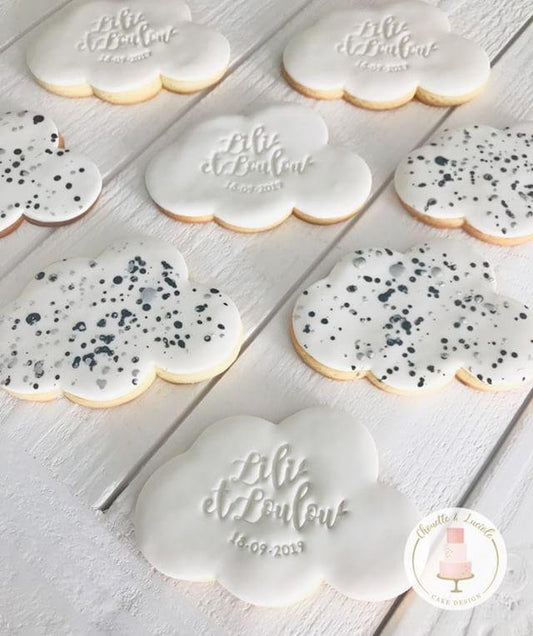 Tampon biscuit mariage Nelly & Greg sur mesure pour personnaliser sablés ou cookies, DIY biscuit personnalisé, tampon biscuit personnalisé