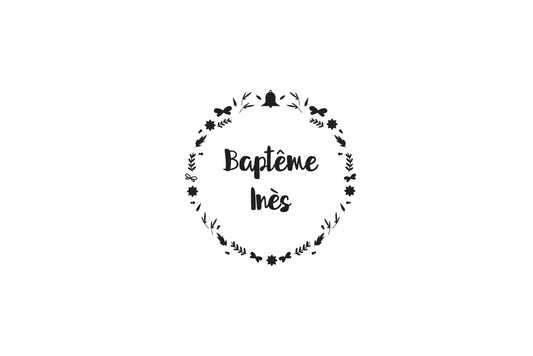 Tampon biscuit baptême Ines avec monture sur mesure pour personnaliser vos sablés ou cookies, vos biscuits seront absolument uniques